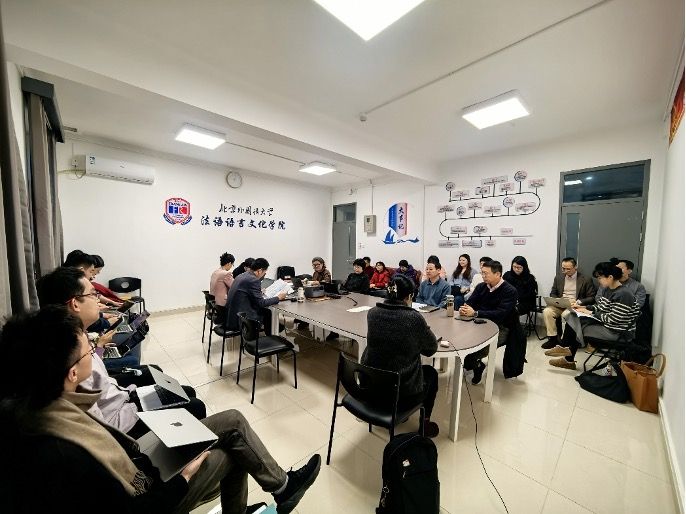 分别召开教学科研分享会和班主任会议。本次教学科研分享会由单志斌、王凝、吴景尧三位教师做学术分享。单志斌老师分享的主题为“法语地域变体与多语能力:对中国法语教学的再思考”,从社会学视角重构了中国法语学习者学习、使用不同法语地域变体的经历。王凝做了题为《媒体方言语言策略研究——以电视剧〈六姊妹〉为例》的学术分享,聚焦方言用于在电视剧里的使用和传播。吴景尧以《谚语的句法特点》为题,简单介绍了中法谚语显著的结构性特点及其语用功能。